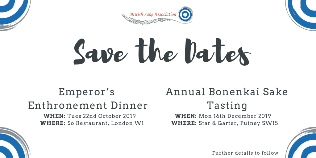 We look forward to seeing you at one or both of these events. Thank you for supporting the British Sake Association.