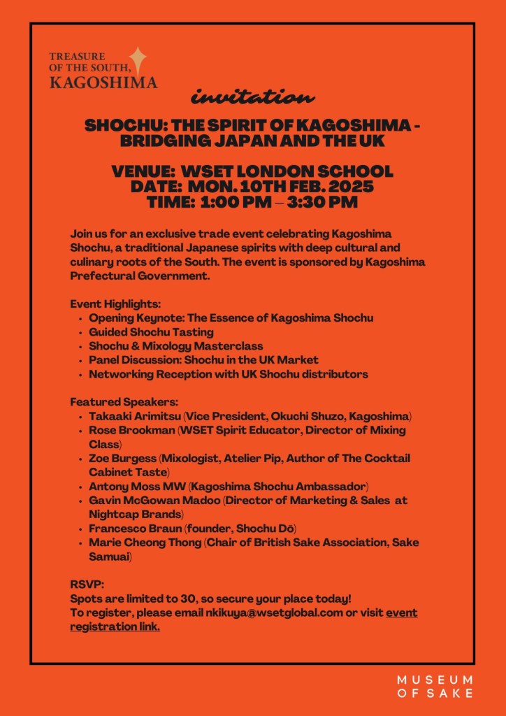 We look forward to welcoming you to this unique celebration of Shochu and building bridges between Japan and the UK!
