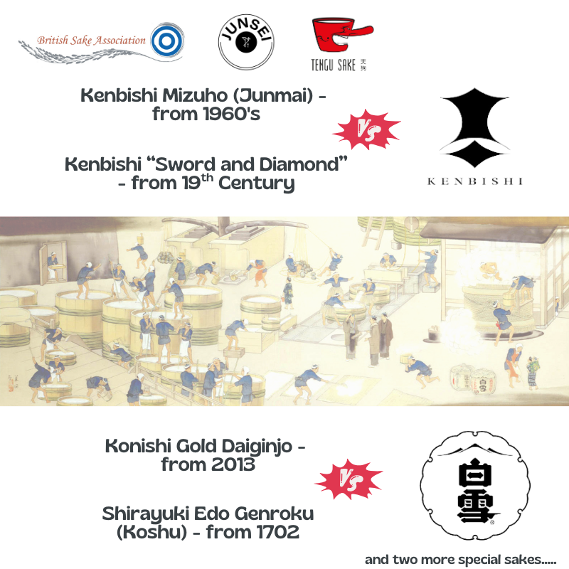 We will be enjoying sake made by Kenbishi (founded in 1505) and Konishi Brewery (founded in 1550), which were two of the superstar sake brands during the Edo Period. Plus, we will be serving two more special sakes (so a total of six sakes!) that will be revealed on the night of the dinner. Join us for the night if you want to know what it is!