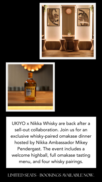 Guests are welcomed with a Nikka Highball before a live omakase tasting menu, paired with four Nikka whiskies, hosted by Ambassador Mikey Pendergast.