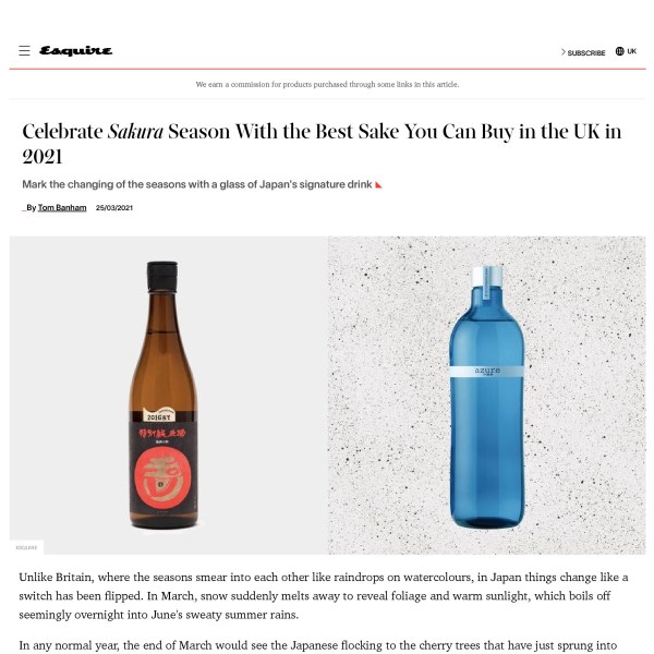 by britishsakeassoc Posted on March 31, 2021March 31, 2021 Esquire: “Celebrate Sakura Season With the Best Sake You Can Buy in the UK in 2021” Read More